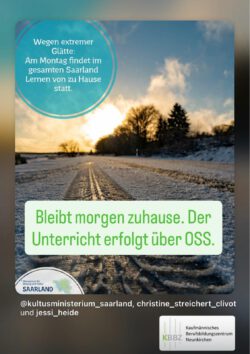 Bei extremen Wetterbedingungen gilt weiterhin: Die Erziehungsberechtigten oder Volljährigen entscheiden, ob der Schulweg zumutbar ist. Bei Fernbleiben ist die Schule zu informieren.